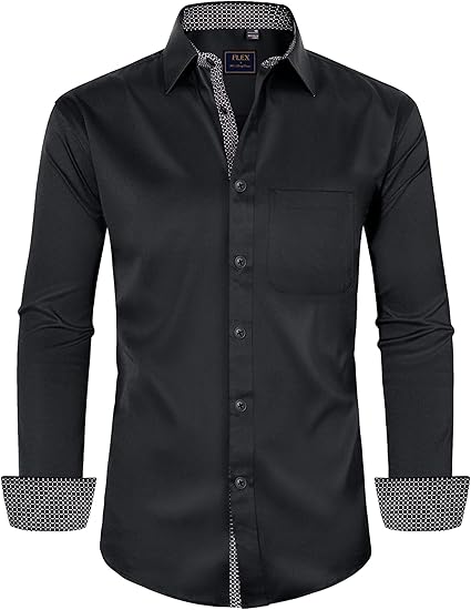 Premium fabric: The long sleeve dress shirt smooth/soft/cool dry/breathable, comfortable against the skin; Material has a definite stretch, you can move your body around easily
