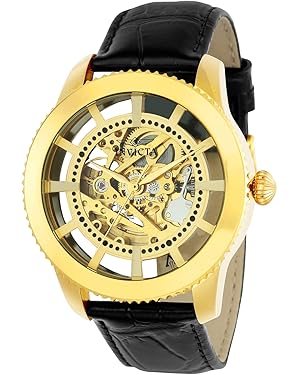 Invicta Men's 'Vintage' Automatic Stainless Steel and Leather Casual Watch, Color:Black/Gold Gold/Gold